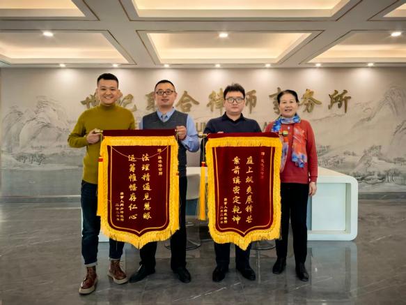 两面锦旗承载的不仅是委托人对两位律师当前工作的肯定和认可,更是对全所律师未来工作的鞭策和激励。我们将牢记司法部提出的“五点希望”,始终以专业的水准、勤勉的态度、高效的作风为每一位委托人提供法律服务,以不负时代、不负韶华的责任担当,用实际行动书写新时代法治华章。